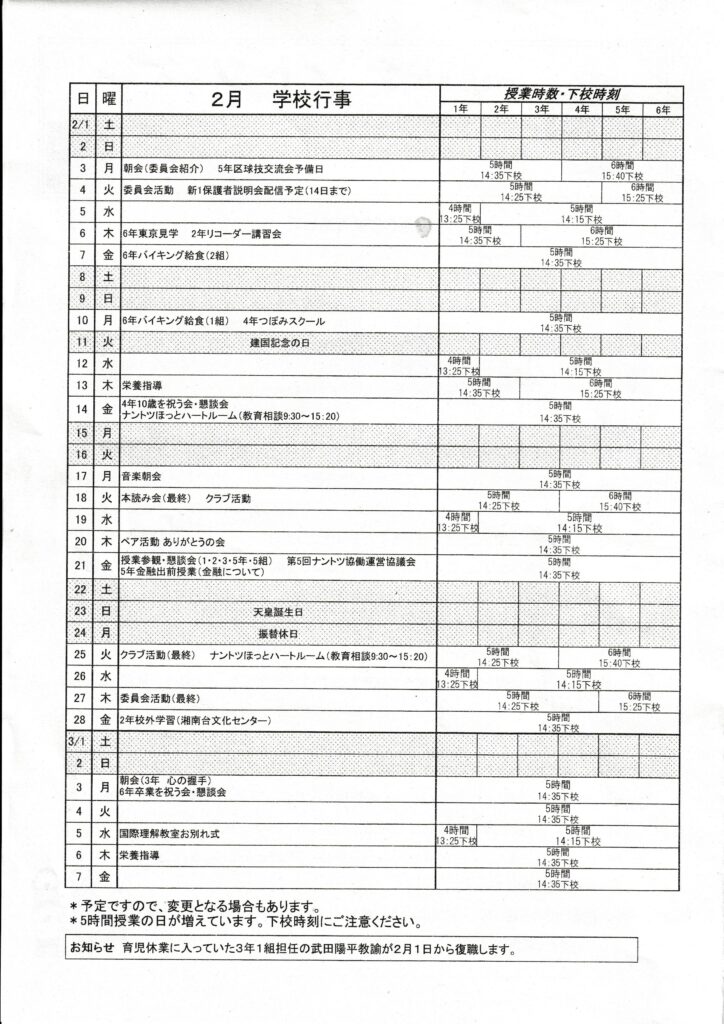 班回覧3月